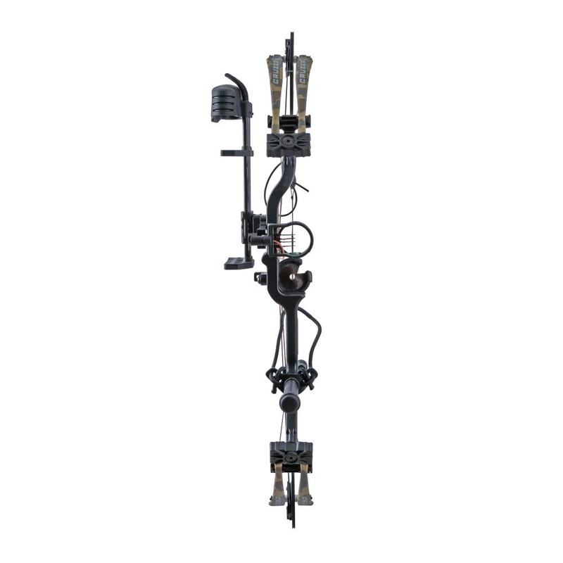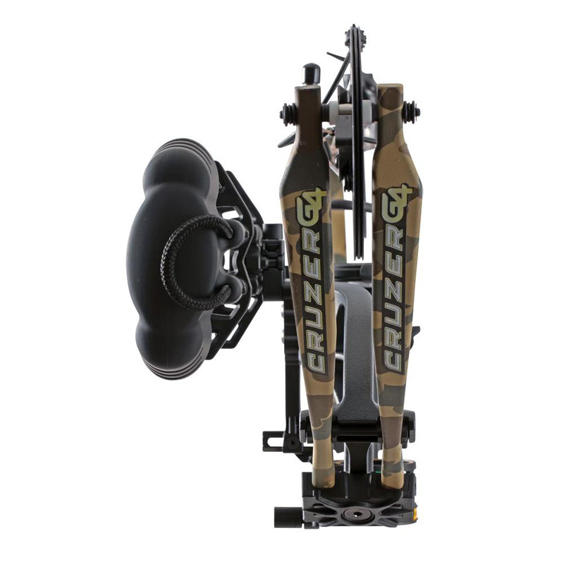 The Cruzer G4 is a lightweight compound bow weighing 3.2 lbs, designed for both youth and adult archers with an adjustable draw weight range of 10-70 lbs and draw length of 14-30". It features a 6.25" brace height, 29" axle-to-axle length, 75% let-off, and generates velocities up to 315 fps, making it suitable for hunting and target shooting applications.