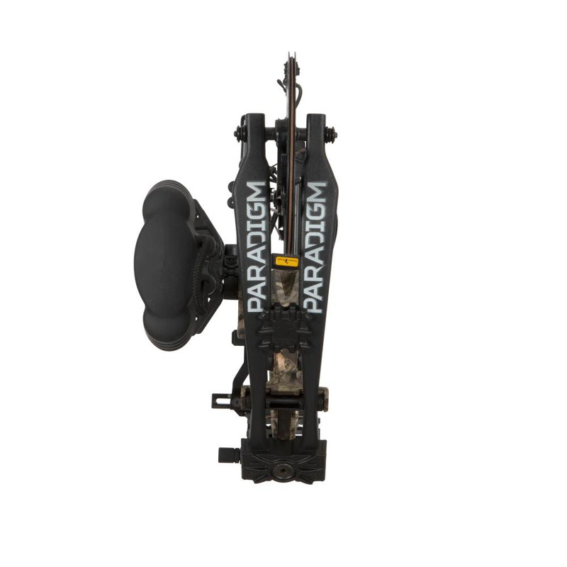 The Paradigm RTH is a ready-to-hunt compound bow featuring an integrated Fatal 4 sight and Whisker Biscuit V arrow rest for a streamlined factory setup. It delivers speeds up to 333 fps with the DHC cam system and adjusts from 27" to 32" draw length, making it suitable for hunters of varying sizes. The bow includes an 80% let-off, 5-arrow quiver, sling, and string dampening system.