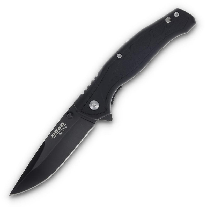 The Bear & Son Edge Brisk 2.0 is a folding knife featuring a drop point blade made from 440 stainless steel with a plain edge. It has a black Zytel handle and comes as a combo package that includes a sharpener, making it suitable for general cutting tasks and outdoor use.