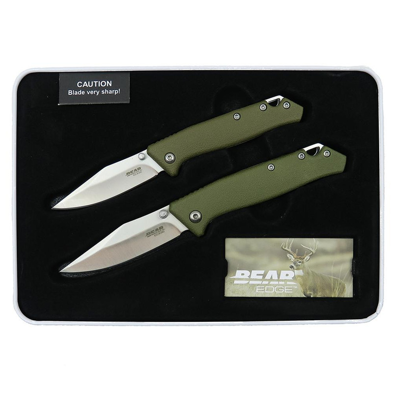 Bear & Son Limited Edition Gift Tin Two Folding Knife Combo Set OD Green - 71829