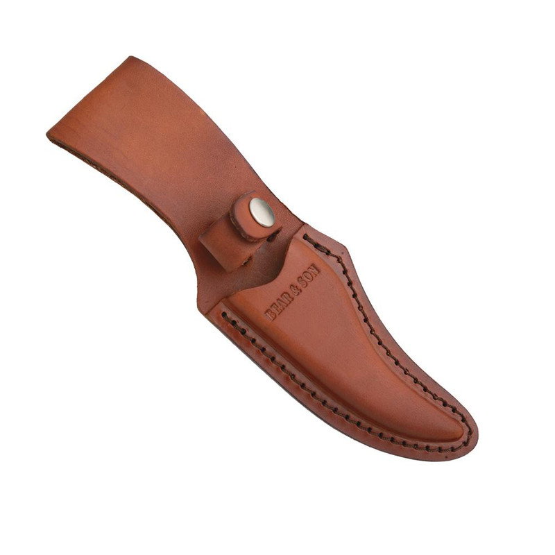 Bear & Son Upswept Skinner Fixed Knife 3-1/8" Clip Point Blade Stag Delrin with Leather Sheath