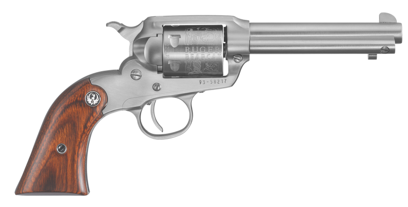 Single-action revolver chambered in .22 LR with a 4" satin stainless barrel and 6-round capacity. Features a compact frame, hardwood grips, blade front and integral rear sights, and patented transfer bar safety mechanism. Weighs 24 oz with an overall length of approximately 9 inches.