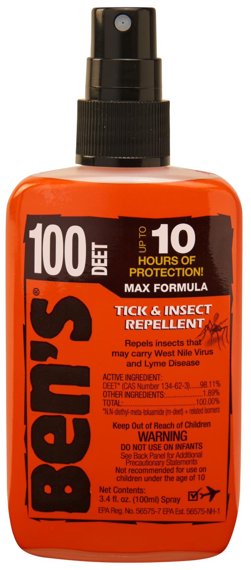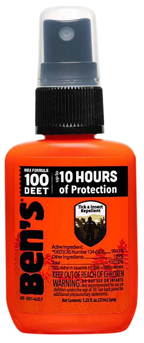 Ben's 100 is an odorless insect repellent spray containing 100% DEET that effectively repels ticks and biting insects for up to 10 hours. The 3.4oz pump spray comes in a carded package for convenient storage and application. This product is designed for hunters and outdoor enthusiasts who need reliable protection against insects while in the field.