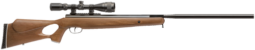 The Benjamin Trail XL 1500 is a .177 pellet break-action air rifle powered by nitrogen piston technology, delivering 1500 fps with a single-shot capacity. It features a hardwood thumbhole stock, rifled steel barrel, and comes equipped with a 3-9x40mm scope for immediate accuracy. This optic-ready rifle weighs 8.5 lbs and is designed for target shooting.