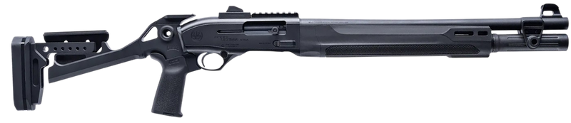 The Beretta A300 Ultima Patrol is a 12 gauge semi-automatic shotgun with a 3" chamber and 19.1" steel barrel chambered for versatile home defense and tactical applications. It features a chisel-pattern synthetic stock, ghost ring sights, extended bolt handle/release, M-LOK barrel clamp, and 7-slot Picatinny rail for optics and accessories. With a 5+1 capacity and weighing 7.1 lbs, this tactical shotgun delivers reliable performance in a compact 38" overall length.