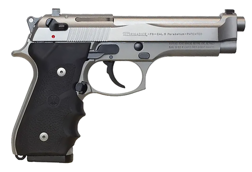 The Beretta 92FS Brigadier is a 9mm semi-auto pistol with a 4.9" barrel and double/single action trigger. This California-compliant model features a 10+1 round capacity, fixed 3-dot sights, and Hogue finger groove wraparound grips. Weighing 34.4 oz with an overall length of 8.5", it delivers reliable performance in a proven platform.