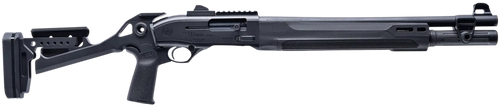 The Beretta A300 Ultima Patrol is a semi-automatic 12 gauge shotgun with a 3" chamber, 19.1" steel barrel, and 7+1 capacity. Features include an aluminum receiver with Picatinny rail, fixed Multicam synthetic stock, enlarged controls, extended bolt release, and M-Lok mounting points for tactical accessories. Overall length is 38" with a weight of 7.1 lbs.