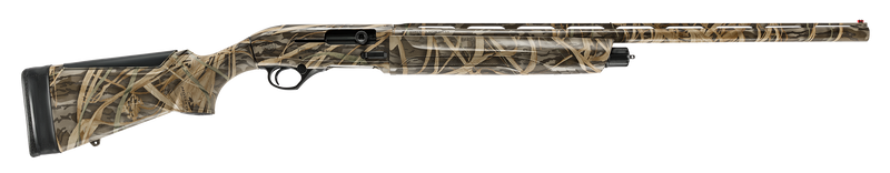 The Beretta A300 Ultima is a 12 gauge semi-automatic shotgun with a 3" chamber, 28" ventilated rib barrel, and 3+1 capacity. It features a Mossy Oak Original Shadowgrass synthetic stock with Kick-Off recoil system, fiber optic front sight with steel mid bead, and a drilled and tapped aluminum receiver. This shotgun weighs 7.62 lbs and includes three Beretta/Benelli Mobilchoke tubes for versatile shooting.