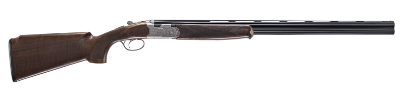 The Beretta 686 Silver Pigeon I Vittoria is a 20 gauge over/under shotgun with a 3" chamber, 28" blued barrels, and 2-round capacity. Features include a silver engraved receiver, Grade II walnut oil-finished stock, low-profile design with reduced stock length, and Optima HP choke tubes (F, IM, M, IC, C). Weighs approximately 7 lbs with a 46-48" overall length.