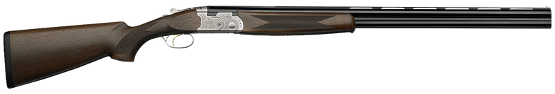 The Beretta 686 Silver Pigeon I is a break-action over/under shotgun chambered in 28 Gauge and 410 Gauge with a 28" Steelium ventilated rib barrel. This right-hand model features a 3" chamber, 2-round capacity, and Optima HP choke configuration. The gun includes an engraved silver receiver, checkered oiled walnut stock, tang safety, and single-select trigger.