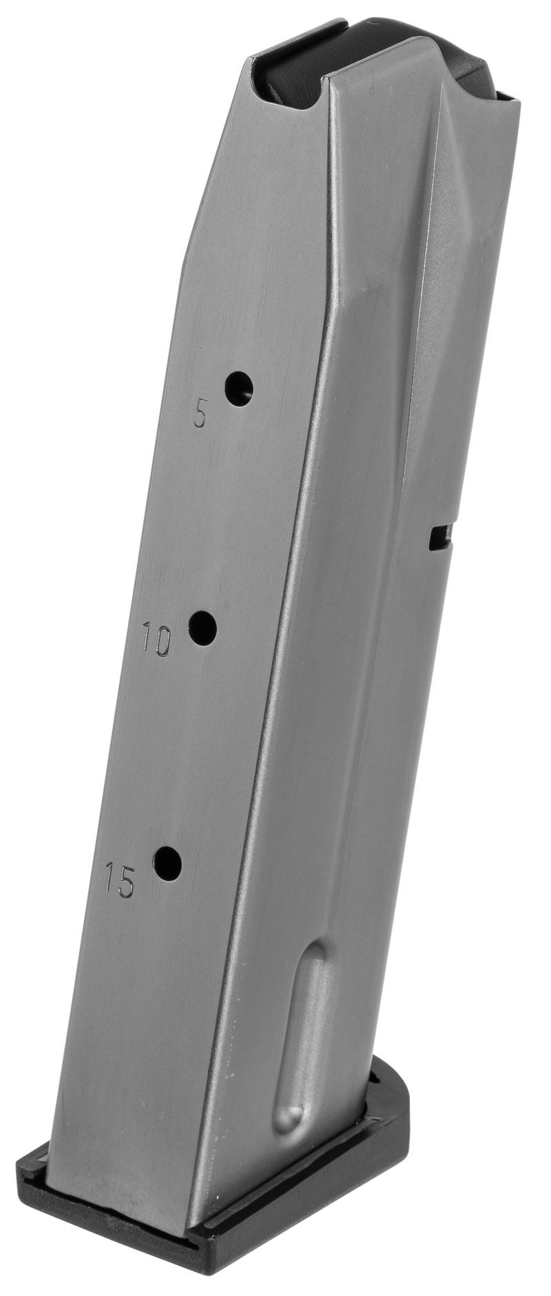 This is a 15-round detachable magazine for the Beretta 92FS chambered in 9mm Luger, manufactured from blued steel. The magazine features a low-friction follower and special PVD coating for sand resistance and reliability, making it suitable for the 92FS, 92A1, M9, and M9A1 platforms.