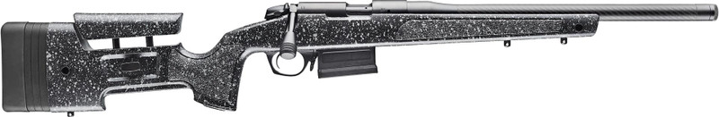 The Bergara B-14R is a .22 LR bolt-action rifle with an 18" carbon fiber barrel and 10-round capacity, designed as a full-size precision trainer for both beginners and competitive shooters. Features a synthetic black/grey stock, threaded barrel (1/2x28), and Weaver optic-ready receiver. Includes one magazine and left-hand configuration.
