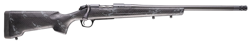 The Bergara B-14 Cima CF is a bolt-action rifle chambered in .308 Winchester with a 20" carbon fiber barrel featuring a threaded muzzle (5/8x24) and Omni muzzlebrake. It features a carbon fiber RTM Sporter stock, drilled and tapped receiver, Bergara performance trigger, and weighs just 5.8 pounds with an overall length of 40 inches. Magazine capacity is 4+1 rounds.