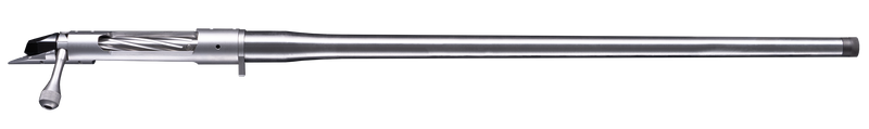 This is a complete barreled action featuring a 20" stainless steel barrel in .308 Winchester with a No. 5.5 contour profile and 1:10 twist rate, weighing 4.9 lbs. The barrel is threaded 5/8x24 and comes with a thread protector, configured for Remington 700 pattern scope mounting with 8-40 threads. Ideal for precision rifle builds, this raw stainless finish barreled action is drilled and tapped and ready for stock and optic installation.