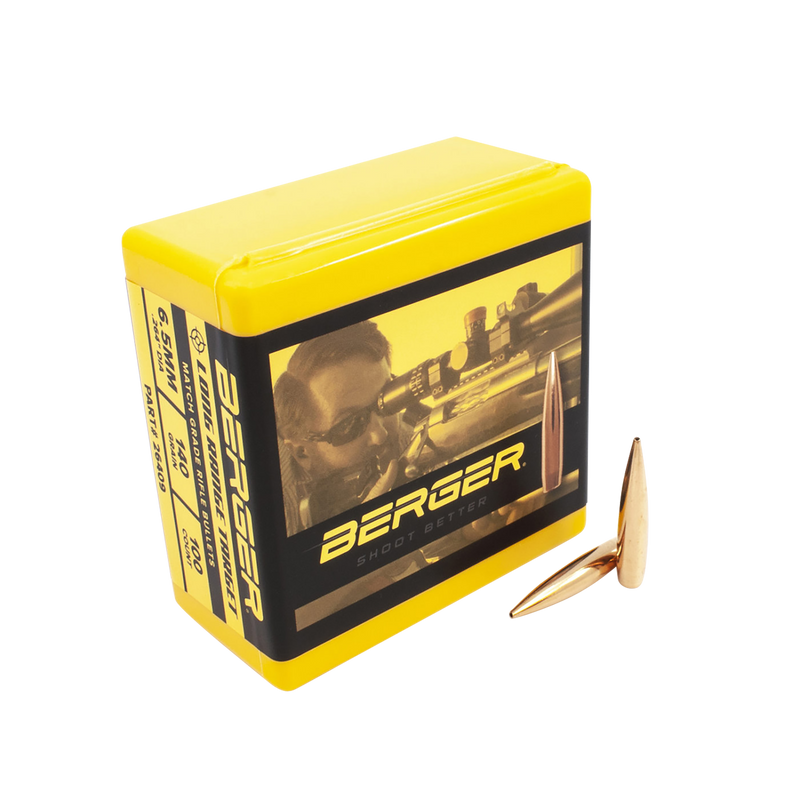 Match Grade reloading bullets designed for precision long-range rifle shooting and target competition. Features Berger's J4 Precision Jackets with .0003" TIR tolerance, .264" diameter, and 100 rounds per box. Constructed with a lead core and copper jacket for consistent ballistics and accuracy.