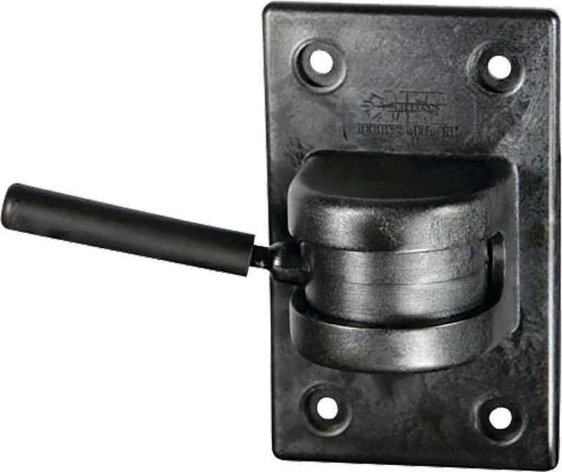 Injection-molded glass-filled nylon gun swing with reinforced stainless steel rod and high-density rubber sleeve for secure .45 caliber handgun storage. Features 180-degree swivel action and can be mounted to any vertical surface for convenient access and organization.