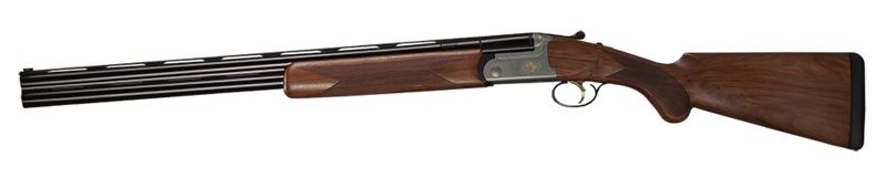 The Bettinsoli Omega S Lite is a 12 Gauge break-action over/under shotgun with a 3" chamber, 28" vent rib barrel, and 2-round capacity. Features include an engraved stainless receiver, blued barrel, walnut wood fixed stock, and ambidextrous handling. Weighs 6 lbs with an overall length of 44.9" and includes 5 chokes.
