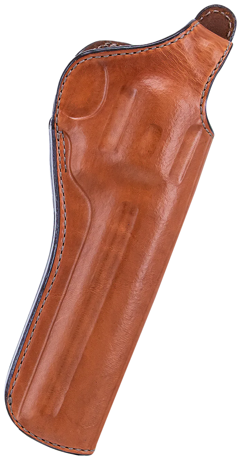 Open bottom leather belt holster designed for right-hand carry of large frame revolvers, specifically the Ruger RedHawk with 7.5" barrels. Features a belt loop mount type and smooth leather finish in tan. Size 10 holster with dimensions of 13.6" length x 4.6" width x 2.4" height.
