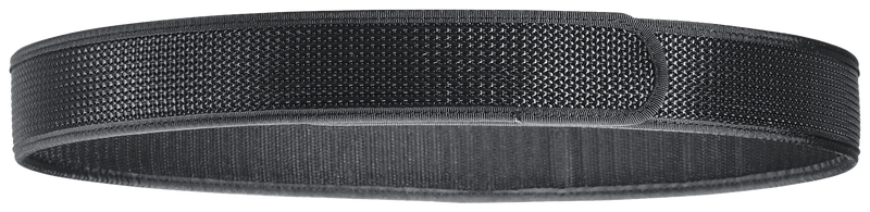 This Bianchi inner duty belt is constructed from nylon and measures 1.5" wide with a hook and loop closure system. Designed to hold and support a firearm, it fits waist sizes 40"-46" large. The textured surface provides secure retention for duty gear and accessories.
