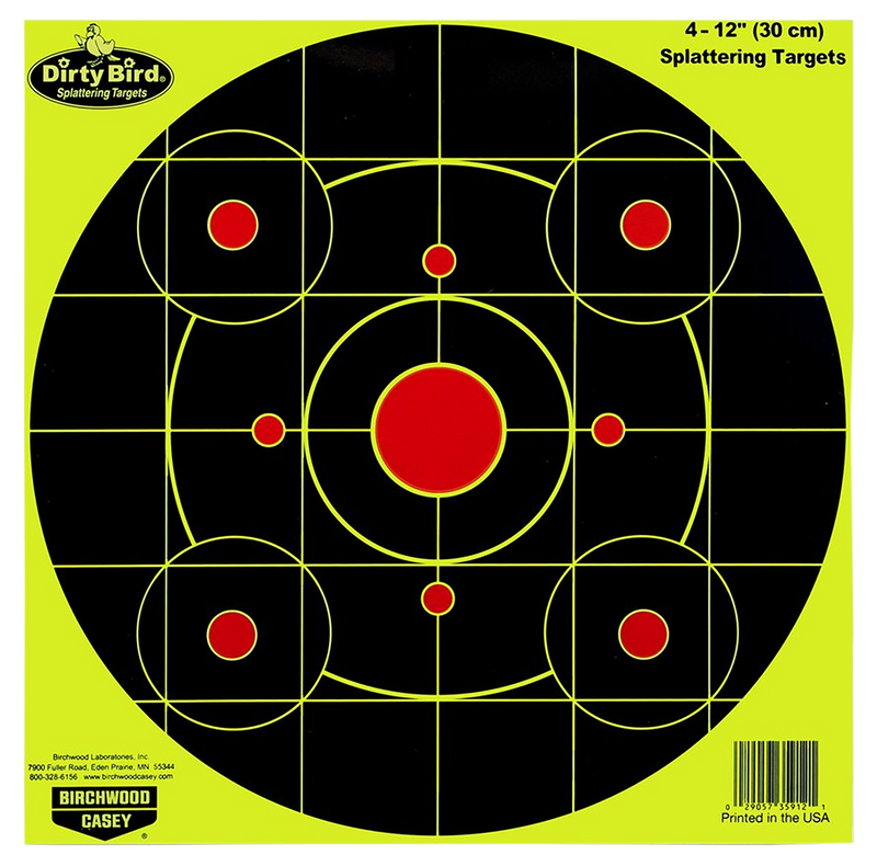 Birchwood Casey Dirty Bird 12" Bullseye Paper Hanging Target, Black/Yellow - 35925