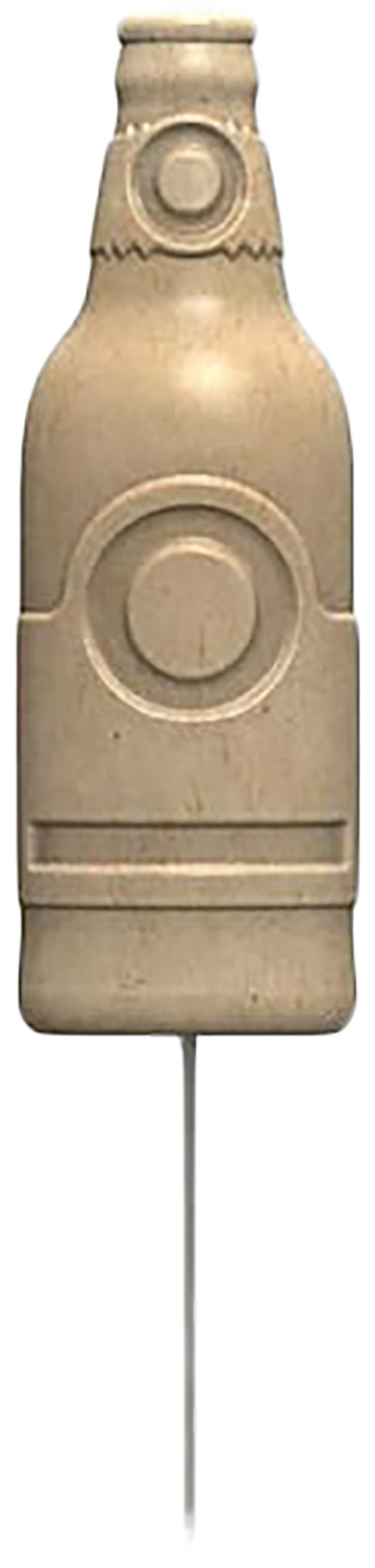3D stake target made from 100% recycled material in a bottle shape, designed for unique range experience. Lightweight and portable with metal stake for securing and propping up the target. Sold in 6-pack quantity.