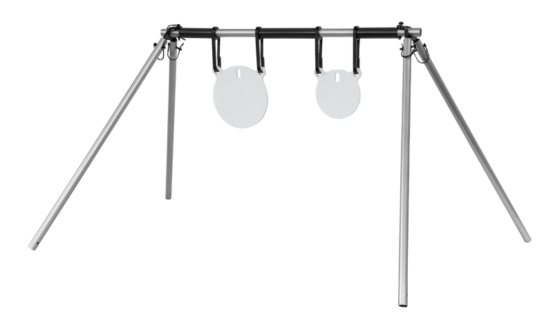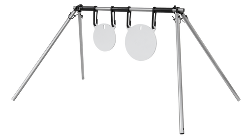 This AR500 steel gong hanger kit includes 6" and 8" round target plates with precision laser-cut edges that are burr-free. The targets are designed to break down for easy storage and transport, and feature a 3/8" hanger system for mounting. The reusable steel construction is suitable for repeated shooting practice.