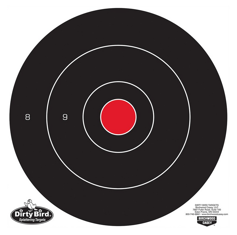 These 12-inch round bullseye targets feature intense white splatter for superior downrange contrast, making shots easy to spot at various distances. Constructed from heavy tagboard with a non-adhesive backing that allows you to affix them to any surface and save targets for future reference. Suitable for indoor or outdoor use with open or scoped sights.