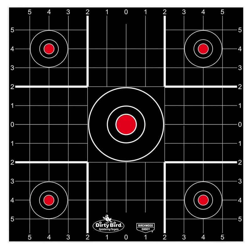 These 12" x 12" tagboard sight-in targets feature five bull's-eye patterns with aiming points suitable for open or scoped sights, allowing shooters to check different ballistic loads up to 400 yards. Each pack contains 12 targets with 1" grid patterns and stadia lines for accurate sighting-in. The intense white splatter impact enhancement provides superior downrange contrast for easy shot spotting.