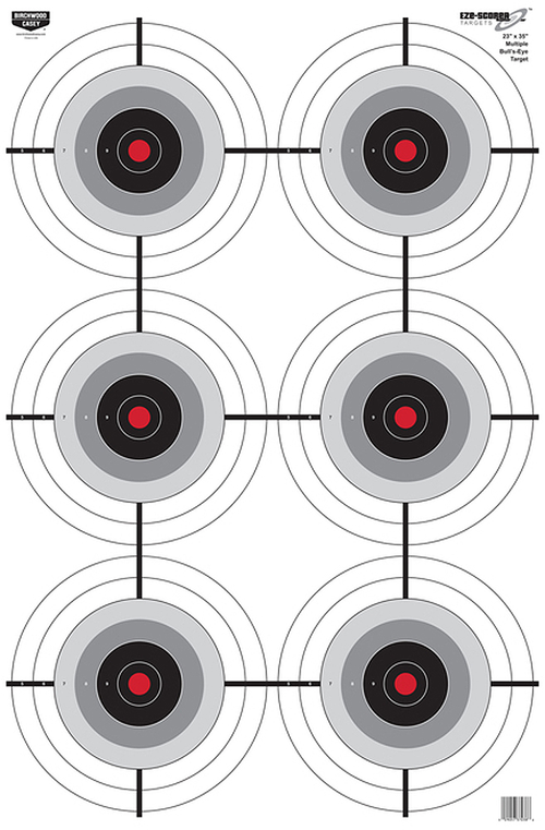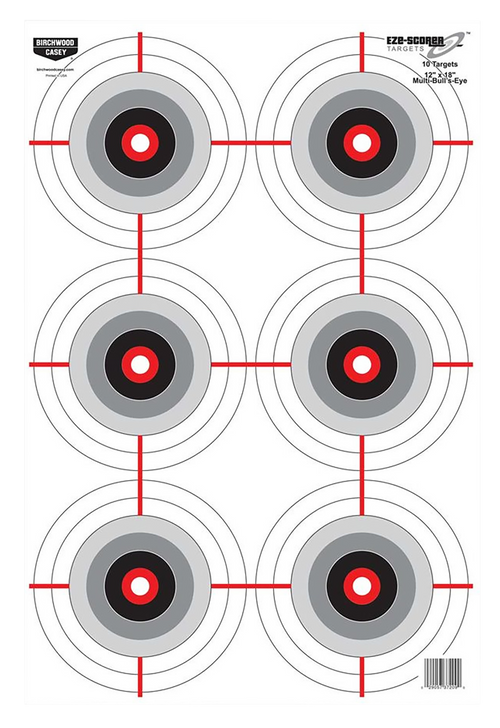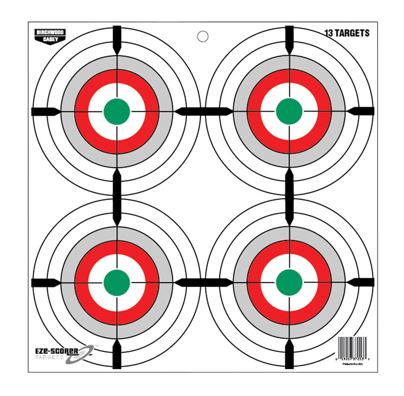 EZE-Scorer paper targets feature multiple bull's-eyes printed on brilliant white paper for extended shooting sessions. Designed for sighting in firearms at indoor or outdoor ranges. Package contains 13 hanging targets measuring 12" in diameter.
