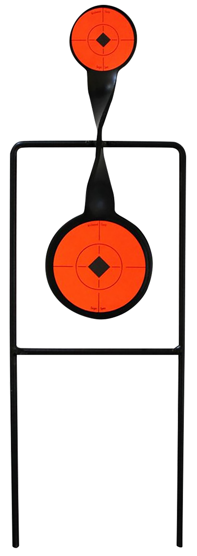The Sharpshooter Spinner Target is designed for active .22 rimfire shooters and features dual-sized bullseyes (2.25" and 3.625") for varied shooting distances and skill levels. Constructed from AR500 steel with black and orange finish for impact visibility, this auto-resetting spinner target accommodates both rifles and handguns at short or long range.