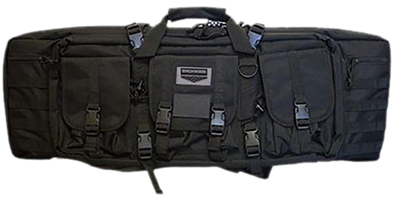 The Birchwood Casey RBG36 is a 36-inch rifle gun case constructed from durable 600D polyester material. It features padded backpack straps for hands-free transport, three large storage pouches for ammunition and accessories, and dual zippered storage areas designed to protect rifles during transport and storage.