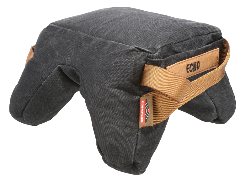 The Birchwood Casey Steady-Shot Echo Bag is a front and rear shooting bag filled with polymer for stable firearm support during range sessions and field use. Features three chambers with zippered access pockets for adjustable fill volume, waxed canvas construction for durability and grip, and includes a large handle and sling loop for rapid position changes. Designed to provide balanced support over various shooting obstacles and positions.