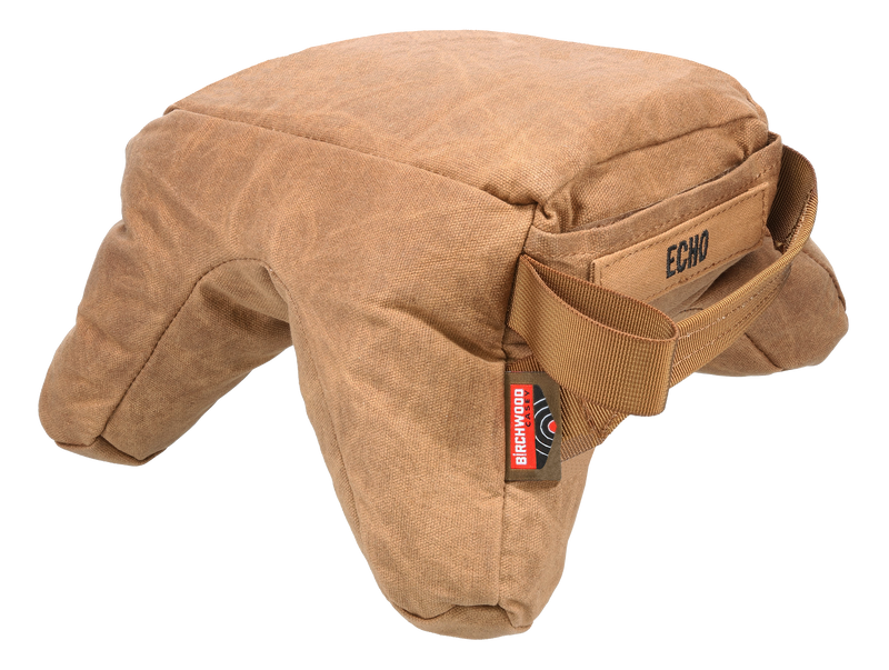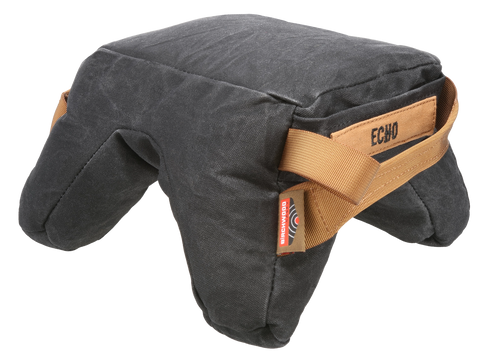 The Steady-Shot Echo Bag is a front and rear shooting bag filled with polymer for stability and support. Features waxed canvas construction with three chambers, zippered access pocket for fill adjustment, large handle, and sling loop for rapid position changes. Dimensions are 11.7" L x 9.5" W x 6.4" H.
