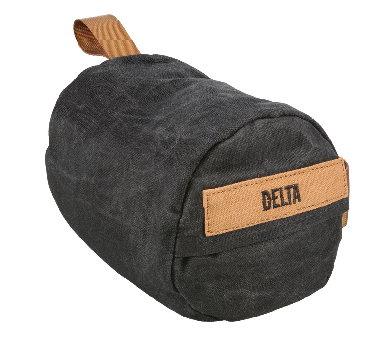 The Steady Shot Delta is a heavyweight polymer-filled shooting bag constructed from waxed canvas that provides stable support for both front and rear rifle positions. Features include a cylindrical shape for precise elevation control, zippered access pocket for fill adjustment, carabiner loop, large handle, and sling loop for rapid position changes. Weighs 3.25 lbs and measures approximately 7.8" x 5.8" x 5.7".