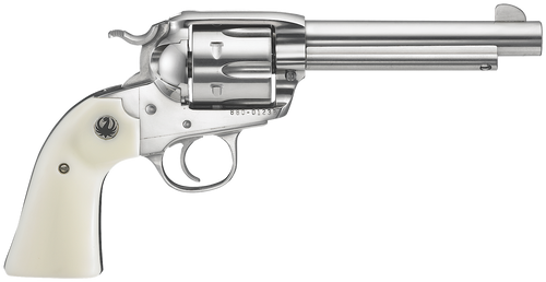 Single-action revolver chambered in 45 Colt/45 ACP with a 5.5" barrel and 6-round capacity. Features a brushed stainless steel finish, adjustable rear sight with pinned front sight, and walnut grips. This John Taffin PPP (Perfect Packing Pistol) Edition includes a mid-size frame convertible design with JT serial number prefix.