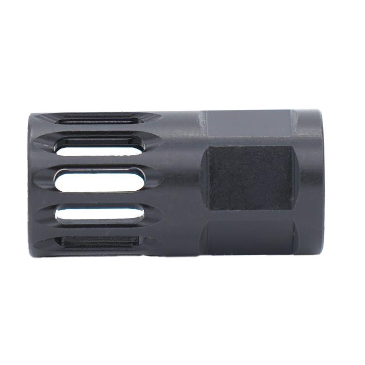 This A2-style thread protector is designed to protect barrel threads while adding aesthetic appeal to the BRO-22 platform. Manufactured from nitrided steel with 1/2x28 thread pitch for secure installation. The durable finish resists corrosion and wear in all weather conditions.