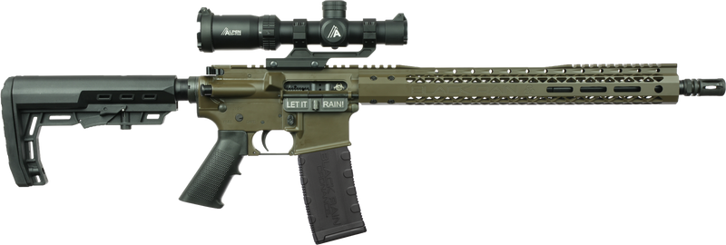 Black Rain Ordnance Spec15 semi-automatic rifle chambered in 223 Rem/5.56 NATO with a 16" stainless steel barrel and 30+1 capacity. Features an A2 flash hider, mil-spec trigger, aluminum receiver, and Magpul stock. Ships with an integrated optic and is ready for tactical or sport shooting applications.
