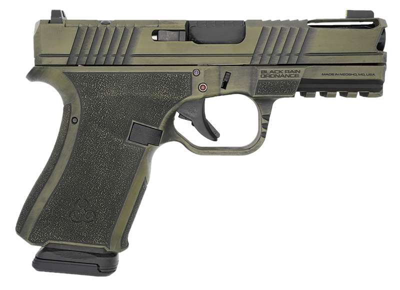 Black Rain Ordnance Frontline+ 9mm 4" 15+1 Compact Pistol, Bazooka Green Battleworn - FLP9MMBGB