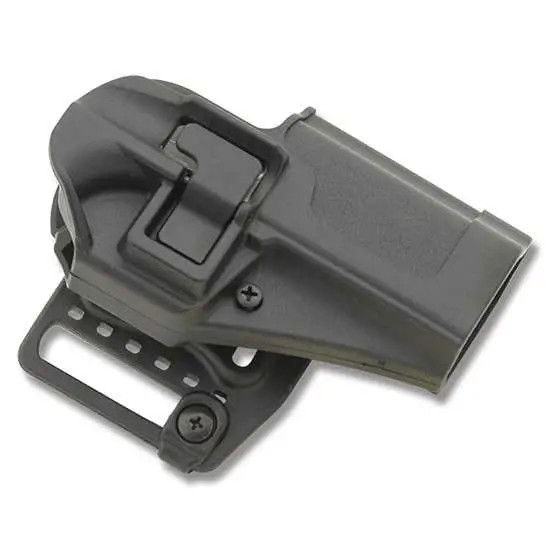 Outside-the-waistband paddle and belt loop holster designed for the Ruger SR9/9E in right-hand draw configuration. Features Blackhawk's patented SERPA Auto-Lock Level 2 retention system with speed cut design for rapid draw and secure re-holster. Constructed from durable matte black polymer with dimensions of 8.0" L x 6.0" W x 3.2" H.