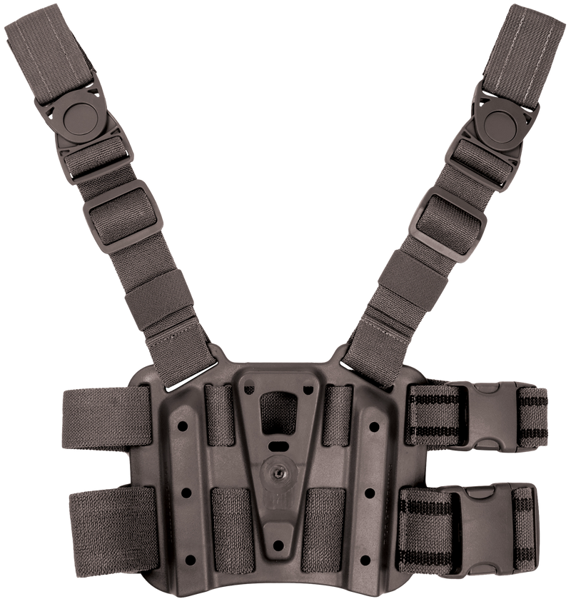 This leg-mounted holster platform is designed to attach Blackhawk CQC Carbon-Fiber or SERPA duty holsters for tactical operations and special use cases. Constructed from carbon fiber with a smooth finish, it measures 11.5" L x 11" W x 4.5" H and accommodates single-compartment storage. The platform is compatible with Blackhawk concealment and duty holsters for handguns.
