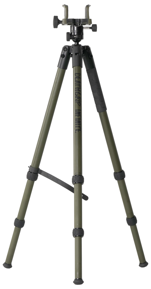 A robust tripod platform featuring a quick-release Arca Swiss mounting system and low-profile ball head, designed for shooting, glassing, and photography applications. Constructed from aluminum with twist-lock legs, hub-mounted gear hook, and proprietary rubber feet with removable steel spikes for stable deployment. The tripod measures 29.9" in length and collapses to 6.5" width by 6.4" height for portability.