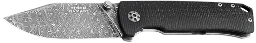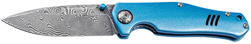 Boker 111101DAM 3.15" Drop Point Damascus Blade Blue Aluminum Handle Folding Knife
