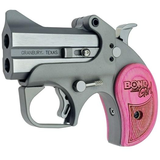 Bond Arms Roughneck Girl .357 Mag/.38 Spl 2.5" 2rd Break-Action Derringer, Stainless Steel with Pink Wood Grips - BOND BARNBG35738