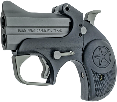 The Bond Arms Honey B is a break-action derringer chambered in 9mm Luger with a 3" barrel and 2-round capacity. This sub-compact handgun features a matte stainless steel frame, fixed sights, extended B6 resin grips, and a manual crossbolt safety, weighing just 17.5 oz with an overall length of 5.5".
