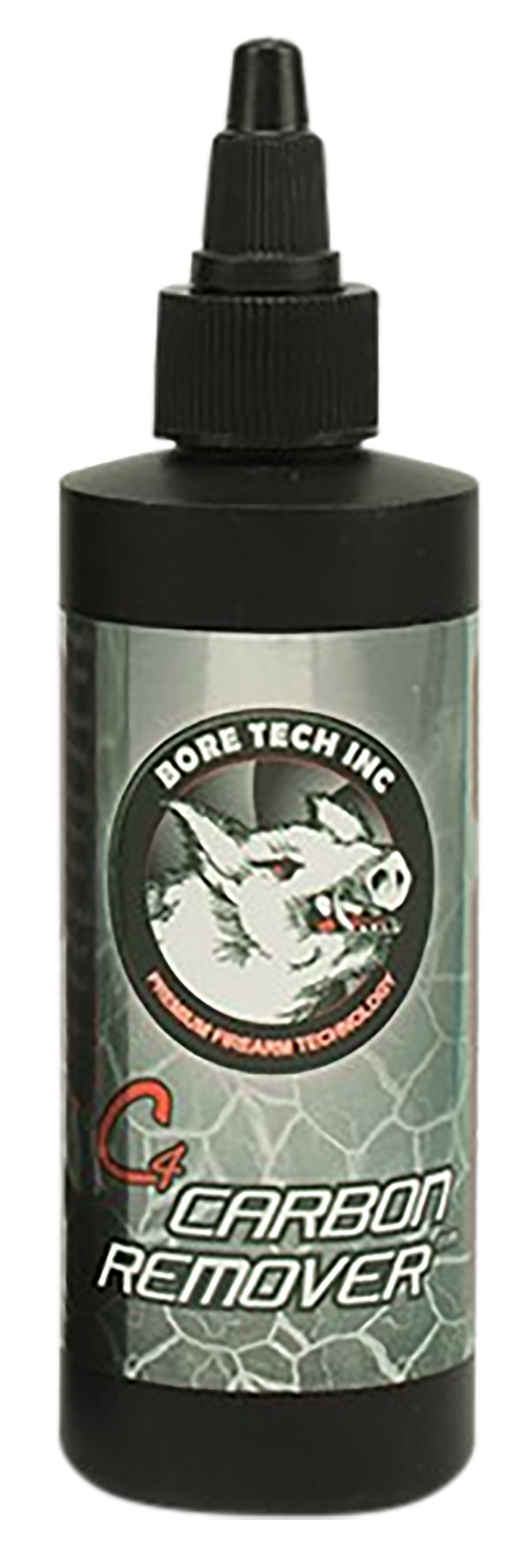 Bore Tech C4 Carbon Remover is a 4 oz solvent designed to remove carbon buildup from firearm barrels and actions. The formula is ammonia-free and non-flammable, making it safe for regular firearm maintenance. This product is suitable for all firearms and helps restore components affected by carbon accumulation during shooting.