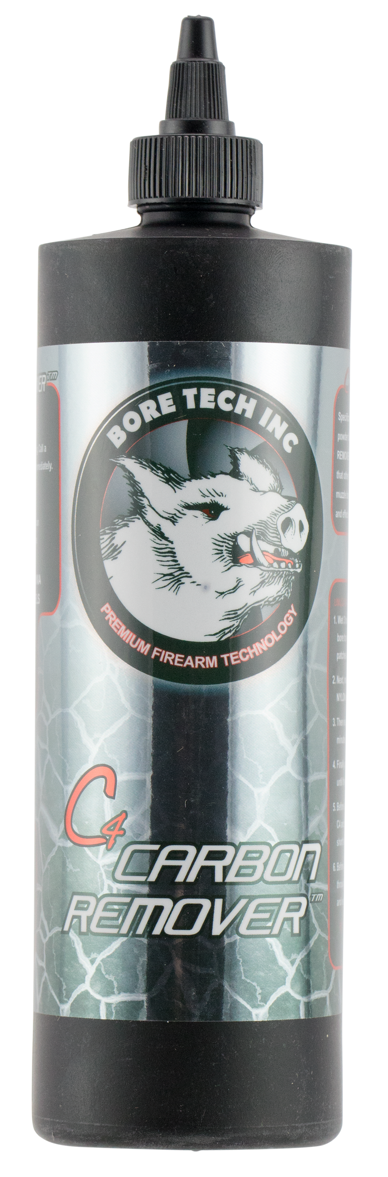 Bore Tech C4 Carbon Remover is a 16 oz bottle designed to remove carbon buildup from firearm barrels and components. The formula is ammonia-free and non-flammable, making it safe for regular cleaning and maintenance.