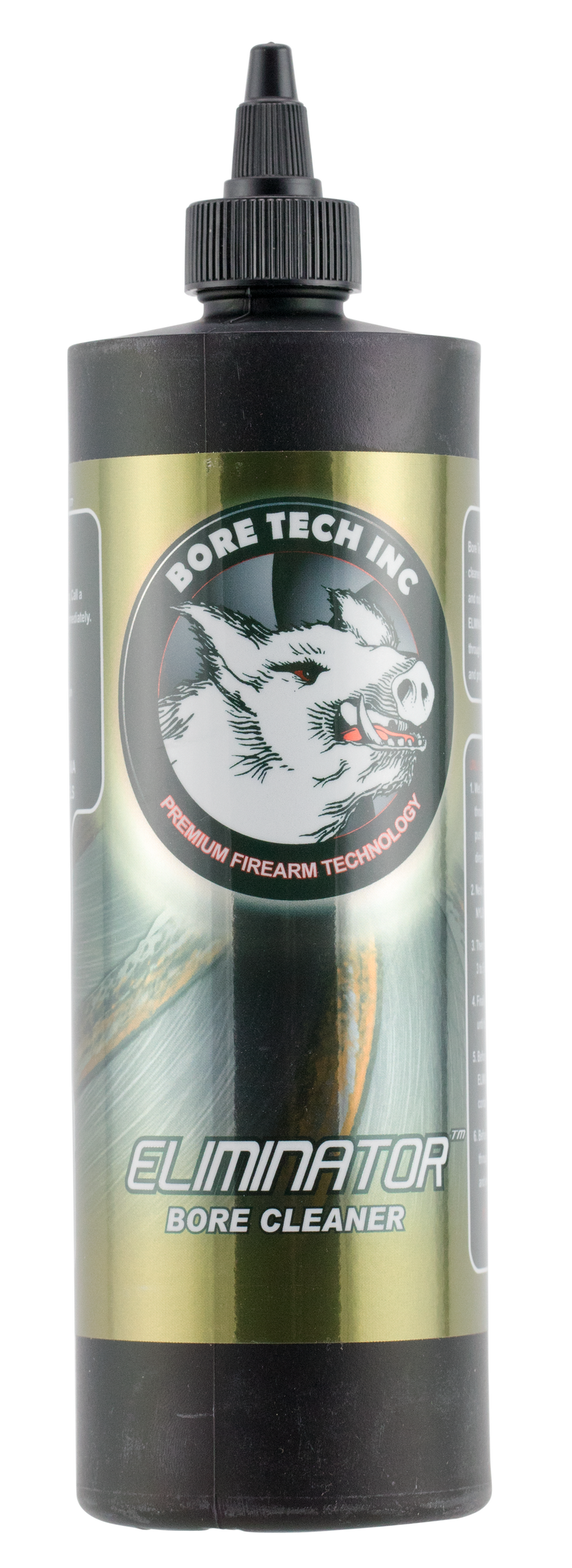 Bore Tech Eliminator is an ammonia-free, non-flammable bore cleaning solvent designed for firearm maintenance. This 16 oz bottle provides effective bore cleaning while protecting against corrosion and rust. Suitable for use on all firearms requiring periodic cleaning and maintenance.