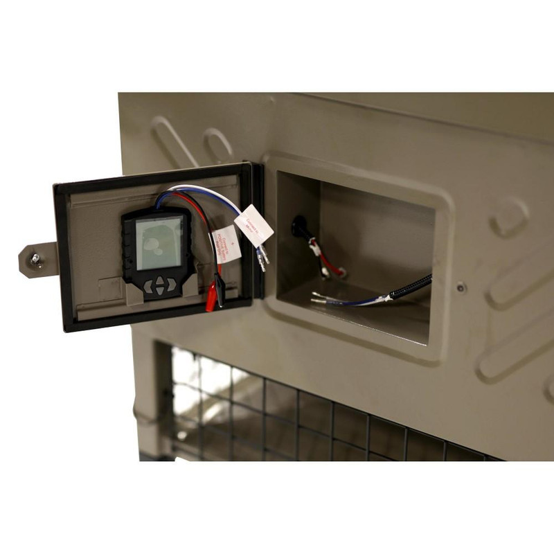 This 600 lb capacity sled feeder features a powder-coated steel construction with a spin plate diverter and varmint guard for efficient feed dispersion and pest protection. Powered by a 12V rechargeable battery and solar panel, it includes a programmable timer with 2 quick-set programs and 16 customizable feeding schedule slots. The feeder assembles easily with a secure latch lid, anchor holes, and tow hook slots for convenient placement and transport.