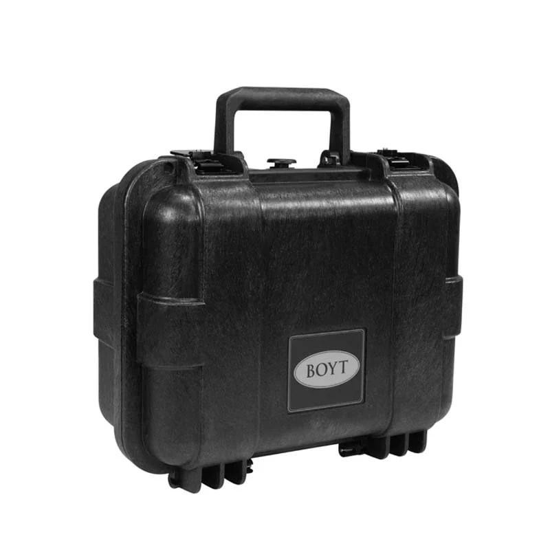 The Boyt H15 is a hard protective case designed to accommodate two mid-sized handguns and accessories. Constructed from injected molded 120D high-impact polypropylene with shock-absorbing 2-piece foam interior (flat foam top and egg crate foam bottom), it features TSA-approval with 2 padlock-compatible locations and powder-coated steel draw latches. Made in the USA with a limited lifetime warranty.