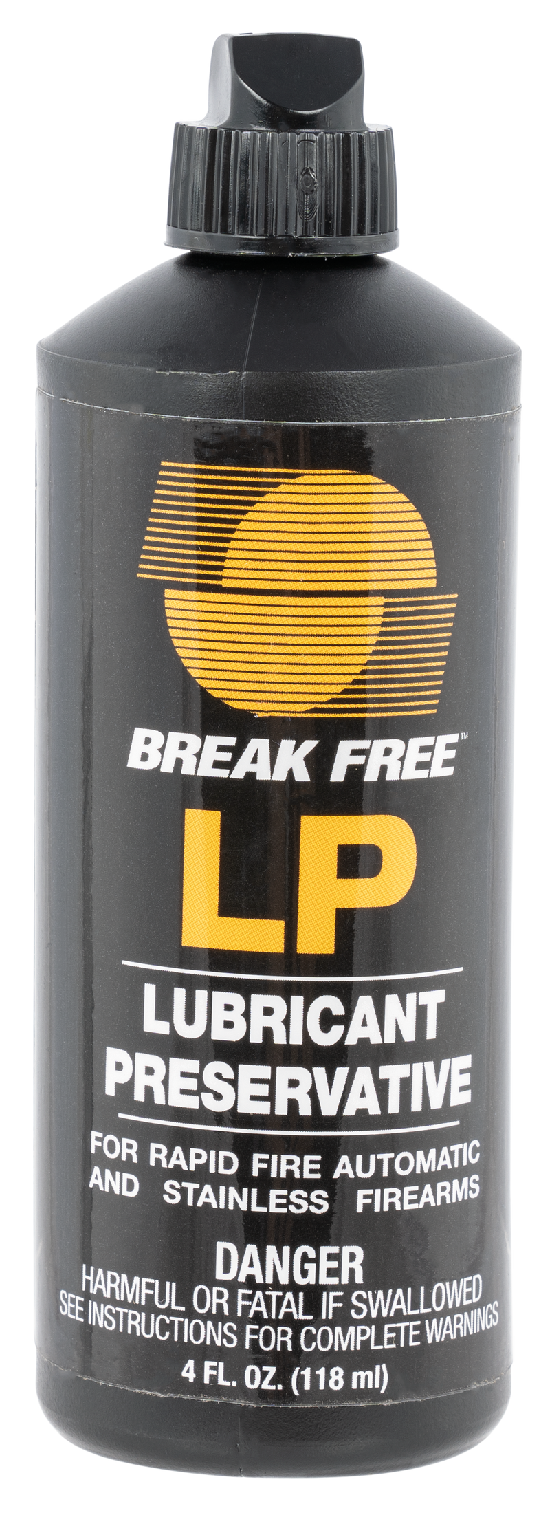 Break Free LP-4 is a synthetic lubricant and preservative formulated with polymerized synthetic oils designed for firearm maintenance and protection. Originally developed for heavy automatic military weapons, it provides boundary film strength, anti-wear, and extreme pressure protection suitable for all firearms including handguns and rifles. The 4 oz squeeze bottle format is convenient for regular cleaning and maintenance applications.